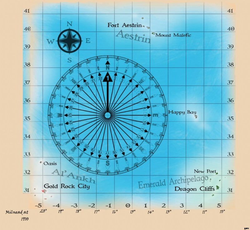 Der Längengrad ist ein schwieriger zu bestimmender Wert, im Spiel und historisch ist er von -5 bis +5 in Sailwinds relevant.
