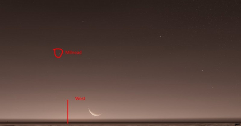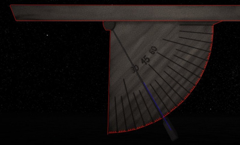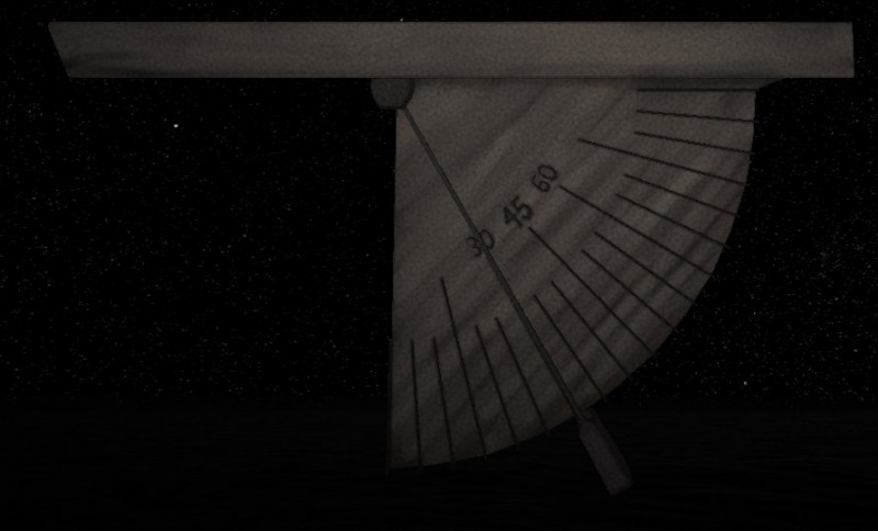 Nachts können Sie den Nordstern verwenden, um Ihren Breitengrad zu bestimmen. Nehmen Sie Ihren Quadranten und richten Sie ihn auf den Stern und klicken Sie dann mit der rechten Maustaste, um den Winkel anzuzeigen. Dieser Winkel korreliert direkt mit Ihrem aktuellen Breitengrad.