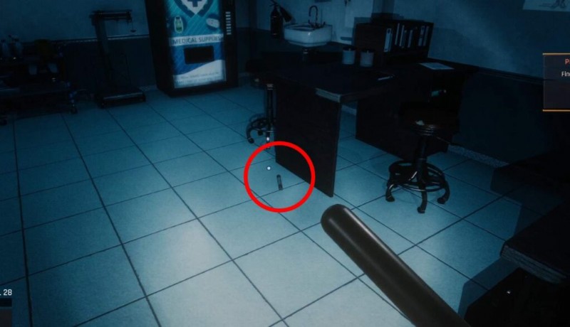 Finden Sie im Leichenschauhaus das Plakat „Leichensicherheit“ links neben dem Vorratsschrank. Dahinter befindet sich ein PIN-Code-Feld. Beachten Sie, dass nur eine Ziffer gebraucht und abgenutzt aussieht – das ist der einzige Hinweis, den Sie brauchen, um den Code zu knacken.