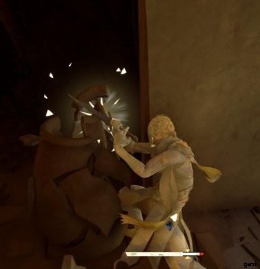 - Brechen Sie die Vasen mit einem Angriff und heben Sie die Maske auf.