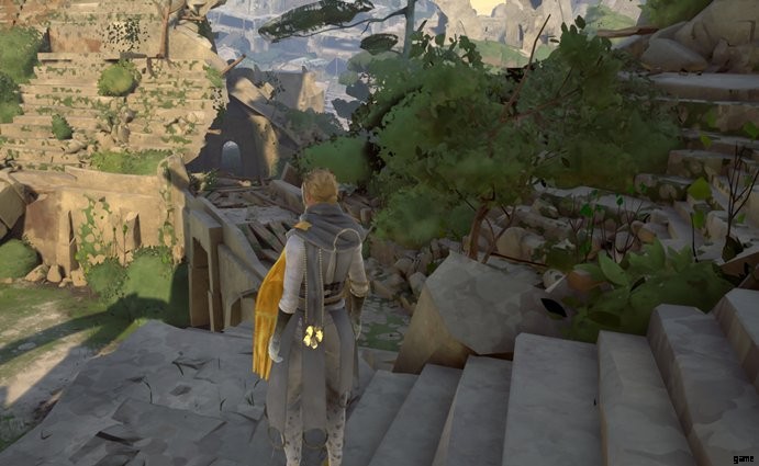 - Steigen Sie die Treppe hinauf, bis Sie fast ganz oben sind; hinter der Treppe wird ein Steinhaufen sein.