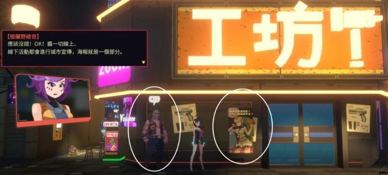Gehen Sie dann zur Vorderseite des Waffenladens, wo Sie mit dem Poster von OK interagieren können! Chan. Der muskulöse Typ wird kommen und mit dir reden.