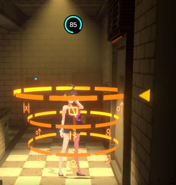 Auf dem Weg in den 4. Stock gerät der Fahrstuhl in eine seltsame Dimension. Mit der Scan-Funktion werden die unsichtbaren Plattformen aufgedeckt. Gehe nach rechts, bis es keine Möglichkeit mehr zu erkunden gibt.