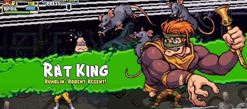 Rat King ist der Stage 5-Boss. Besiege ihn mit Splinter (es ist kein Last Hit nötig, wenn du MP spielst).