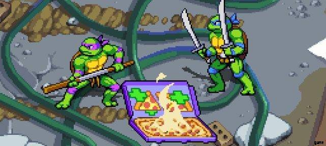 Pizzen findest du überall in den Levels. Es gibt im Spiel mehrere verschiedene Pizzen mit Effekten für Spieler:Manche heilen die Gesundheit eines Charakters, manche für die ganze Gruppe, es gibt auch eine Pizza, die Energie für Super-Strikes gibt und andere. Wählen Sie einfach aus, um es zu essen.