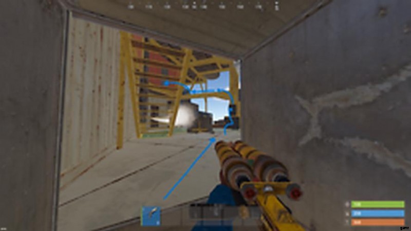 Warten Sie, bis der Typ seine Waffe nachlädt, bevor Sie angreifen, klettern Sie die Leiter hinauf, während sie nachladen/abgelenkt sind, und eokaen Sie sie oder schießen Sie sie einmal mit einer Armbrust, und schießen Sie sie dann mit einer Nagelpistole zu Tode.
