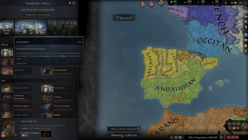 In Crusader Kings III , Forschung ist in Ihrer Kultur verwurzelt. Jede Kultur entdeckt zu unterschiedlichen Zeiten Technologien, die ihre Umsetzung bei ihren Führern und Menschen repräsentieren.